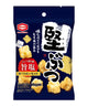 | 原材料 | 植物油脂(国内製造、中国製造)、米粉(うるち米、もち米)、うるち米、でん粉、コーンフラワー、準チョコレート、もち米、小麦粉、砂糖、ピーナッツ、みりん、食塩、はちみつ、シラップ、しょうゆ、乳等を主要原料とする食品、コーングリッツ、ココアパウダー、とうもろこし風味シーズニング、ビターシュガーパウダー、粉末油脂、コーンパウダー、デキストリン、はちみつバター風味シーズニング、ホエイパウダー、ぶどう糖果糖液糖、魚介エキス調味料、香辛料、食物繊維、オニオンパウダー、たん白加水分解物、こんぶエキスパウダー/加工でん粉、調味料(アミノ酸等)、乳化剤、着色料(カラメル、カロチノイド)、香料、炭酸カルシウム、甘味料(スクラロース、ステビア)、(一部に小麦・乳成分・落花生・大豆を含む) |